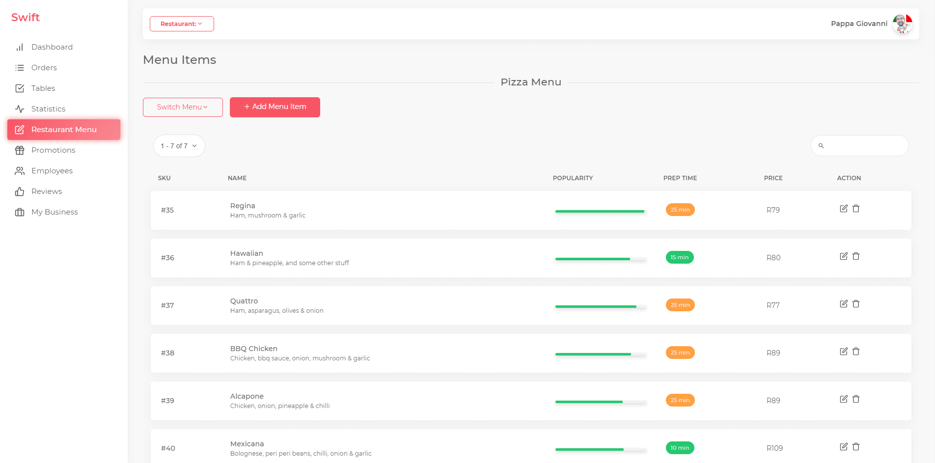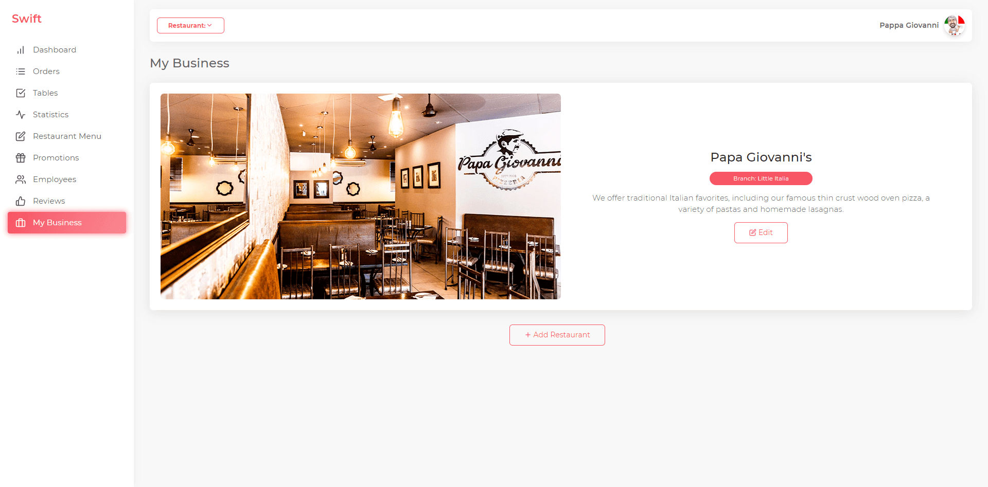 Anyone can register for the Swift management application and list their restaurant on the system. A user also has the option to create multiple restaurant branches, or even completely seperate businesses.