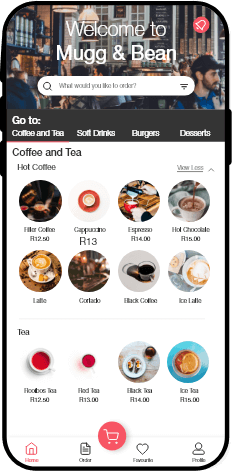 After you have checked-in to a restaurant, you can now view all of the menu items available. Again you have the option to filter by searching or via the pro- vided categories. The beverages and food menu’s appear below.